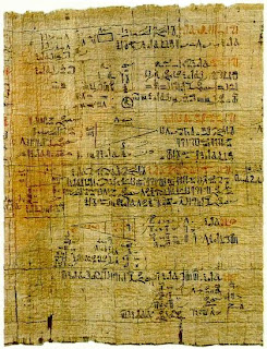 The extensive literature on ancient Egyptian mathematics needs to be read with the fact in mind that In reality the surviving written sources on the subject are very sparse (five papyri, a leather roll and two wooden tablets from 2055–1650 BCE), much of it focussing on the Rhind Papyrus, which appears to have been an instruction text for scribes, transcribed by scribe Ahmes in 1650–1550 BCE from an older text from 1985–1795 BCE.68 The papyrus presented a series of problems and worked solutions of the sort that scribes might have to deal with in their various roles, but always as a specific case example, and then developed with increasing difficulty. To these papyri can be added but with the aid of surviving technological artifacts - structures, objects in tombs, and inscriptions on tomb walls. From this corpus it is possible to draw quite a wide range of conclusions.69 Here it is sufficient to note that the ancient Egyptians had developed a capacity to solve mathematical problems firmly rooted in the practical needs of the society. These needs included such things as calculating the area of land, the fraction of crops required in annual payment of dues to the state, the quality of products such as beer and bread (expressed as the “psw” or fraction of grain required to produce them), and quantities of ores and other ingredients to smelt metals. They knew about the practical measures required to measure out fields, and volumes of various shaped objects, and how to characterise a slope (for example of a pyramid (by calculating the “sqd” - the distance (in number of palms) by which it deviated from the vertical in a vertical rise of one cubid. They found a workable approximation for the area of a circle, and thus a reasonable approximation to what we call pi.
